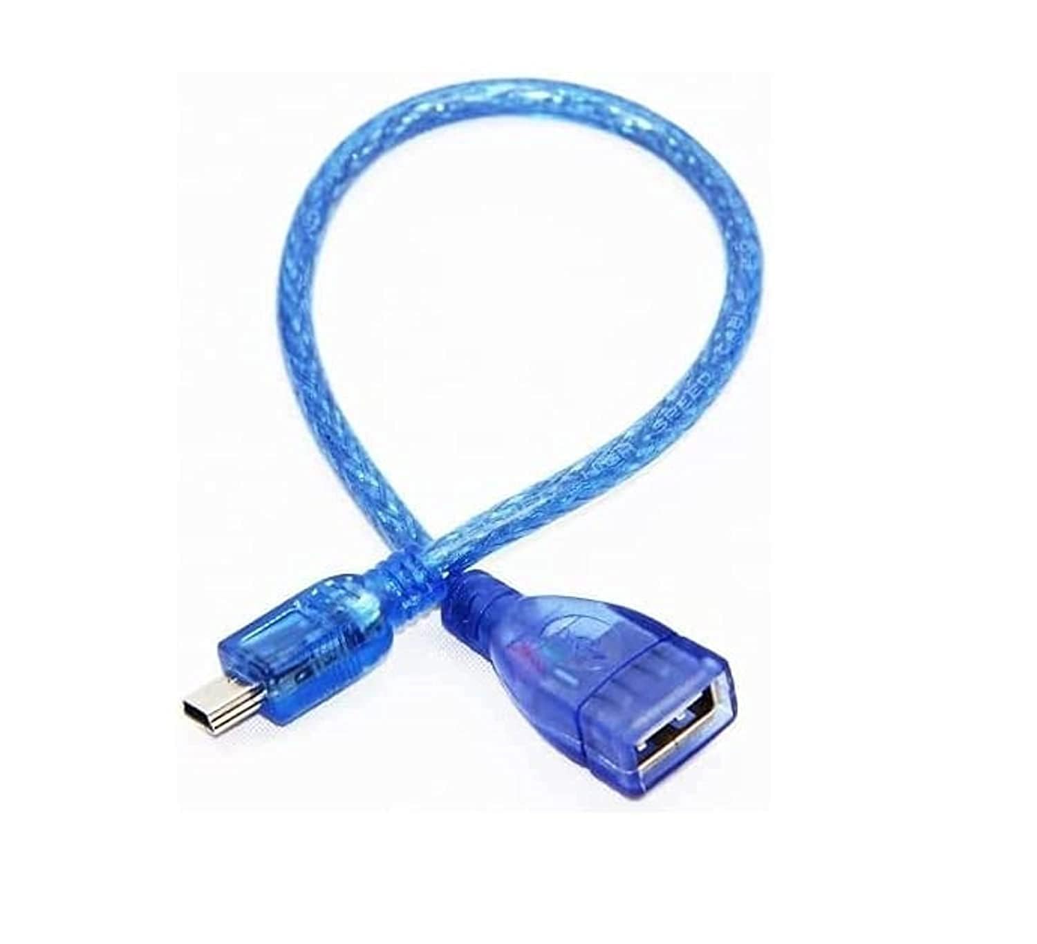 كابل USB 2.0 امبير انثى الى ميني 5 سنون ذكر 10 سم لون ازرق شفاف لأجهزة متعددة OTG V3