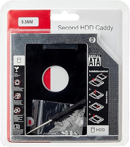 كادي من الألمنيوم بسماكة 9.5 ملم (حافظة محرك الأقراص الصلبة) مع محول ساتا 3.0 لمحركات الأقراص 2.5 SSD لأجهزة اللاب توب ومحركات DVD/CD-ROM